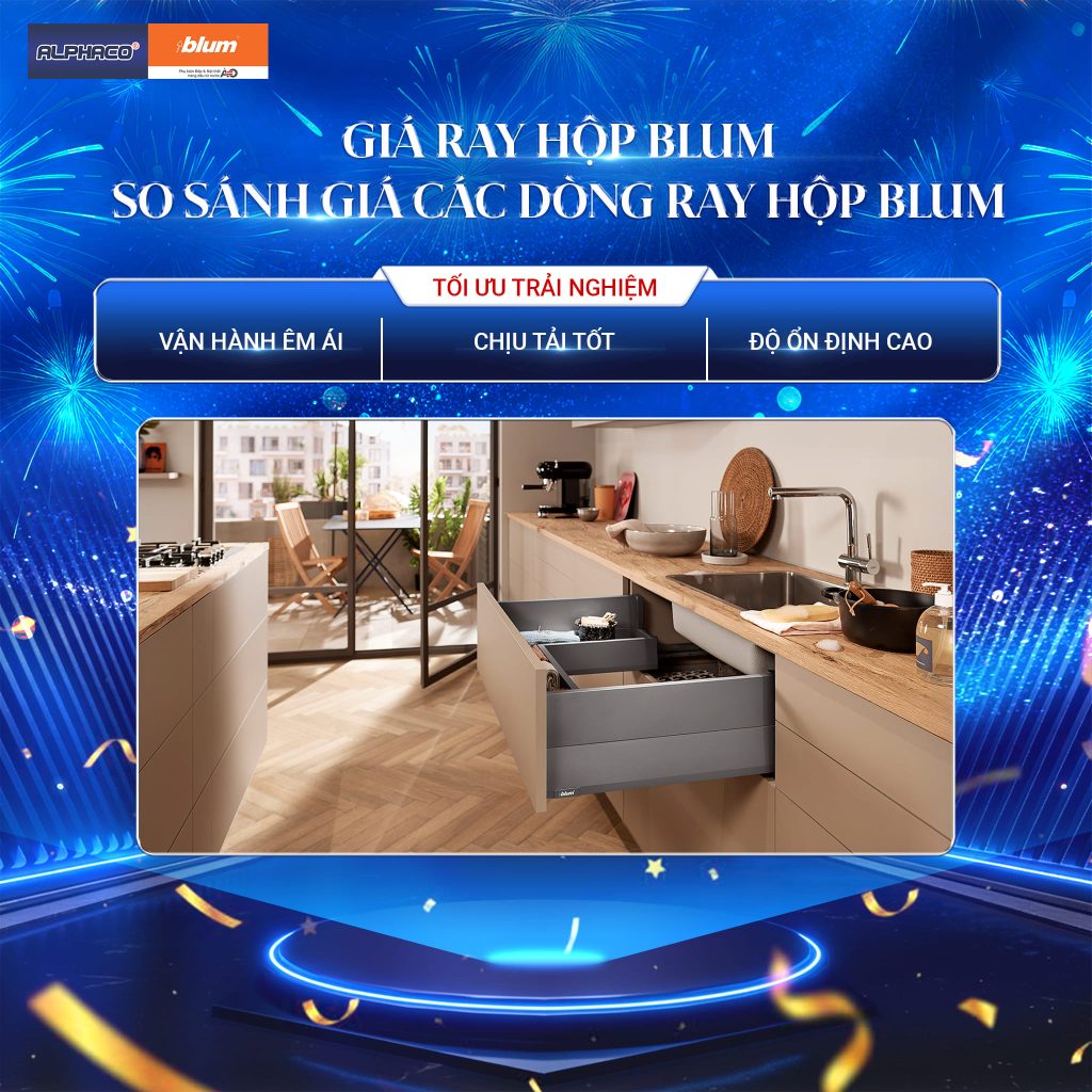 Giá ray hộp Blum trên thị trường hiện nay dao động tùy theo dòng sản phẩm, tải trọng và tính năng, phù hợp từ nhu cầu cơ bản đến nội thất cao cấp, giúp người dùng dễ dàng lựa chọn giải pháp phù hợp với ngân sách và mục đích sử dụng.
