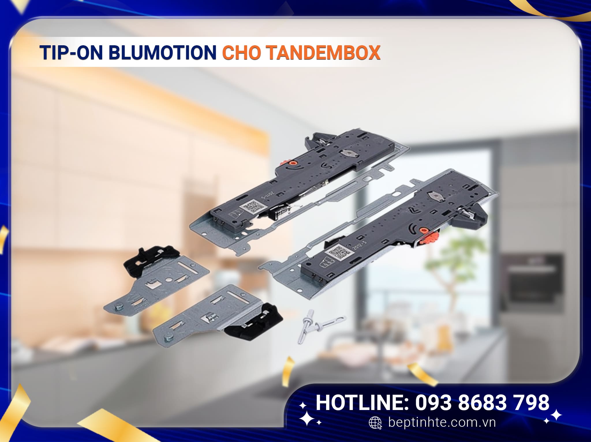TIP-ON BLUMOTION hỗ trợ mở ngăn kéo bằng cơ, khi nhấn nhẹ vào mặt trước và nhả ra thì ngăn kéo sẽ tự động mở. Chức năng giảm chấn BLUMOTION có sẵn trên ray trượt đảm bảo ngăn kéo đóng lại luôn êm mượt.