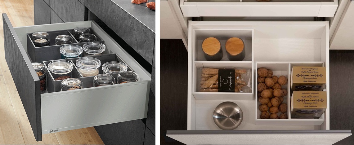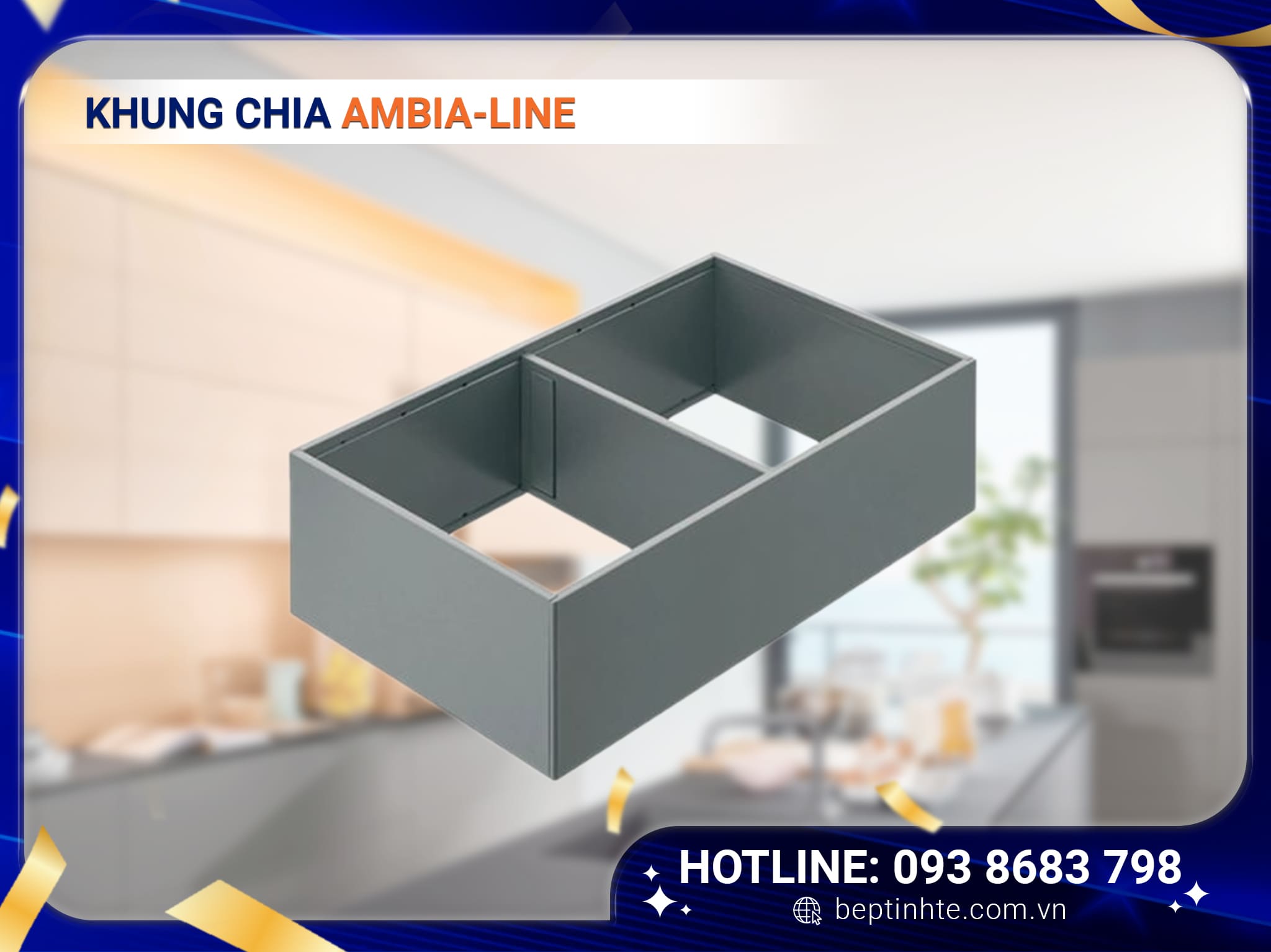 Khung chia AMBIA-LINEcó chiều cao 111.5mm, thiết kế mảnh, sang trọng và có thể lắp ở mọi vị trí bên trong ray hộp LEGRABOX C, F và IC.