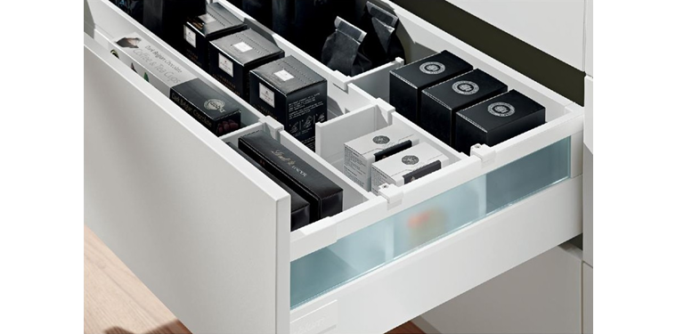 Ray hộp TANDEMBOX X4 có thể được xem là phiên bản nâng cấp của TANDEMBOX X2. Nhờ có thêm thanh thiết kế tùy chọn bằng kính, kim loại hoặc gỗ mà thành ngăn kéo X4 kín, không hở như X2. Từ đó tạo ra điểm nhấn riêng trong thiết kế.