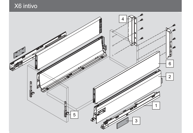 Thêm một mẫu thiết kế truyền thống thuộc Hệ thống ray hộp Tandembox của Blum, đó là Ray hộp TANDEMBOX X6! Thành ngăn kéo được thiết kế đơn giản, tinh tế. Nhờ có cặp thành hộp nâng cao (mục số 6 trên hình) lắp chồng khít lên cặp thành hộp mà ray hộp X6 có chiều cao 205mm, rất phù hợp trong việc lưu trữ các chai lọ, vật dụng cỡ vừa đến lớn.